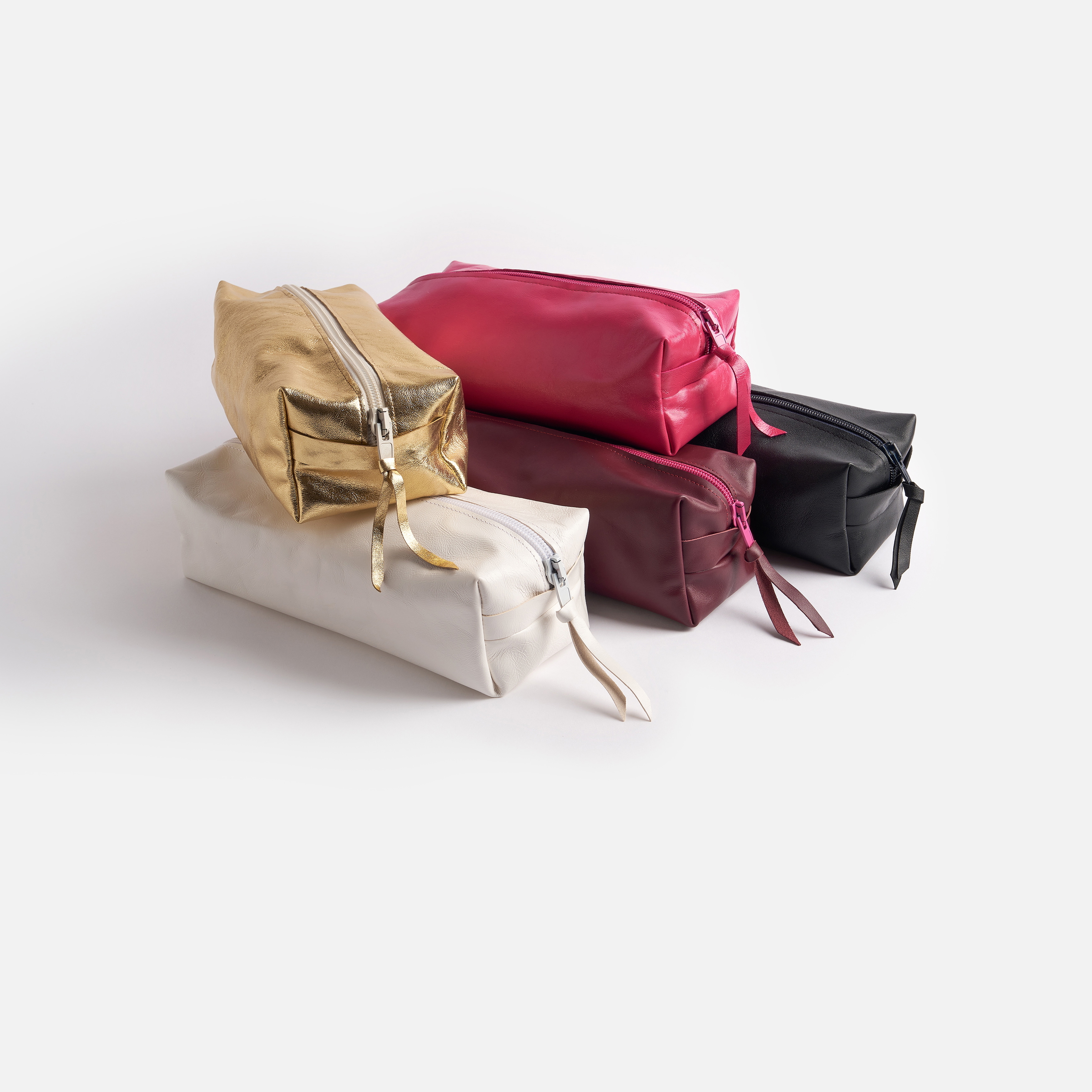 MATIÈRES : Nous avons choisi pour les trousses de très beaux cuirs souples et sensuels. La doublure intérieure est réalisée dans un chatoyant tissu ottoman en contraste ou ton sur ton.