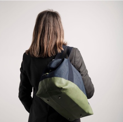 MATIÈRES : Produit réalisé dans une toile denim rehaussé par un empiècement cuir.