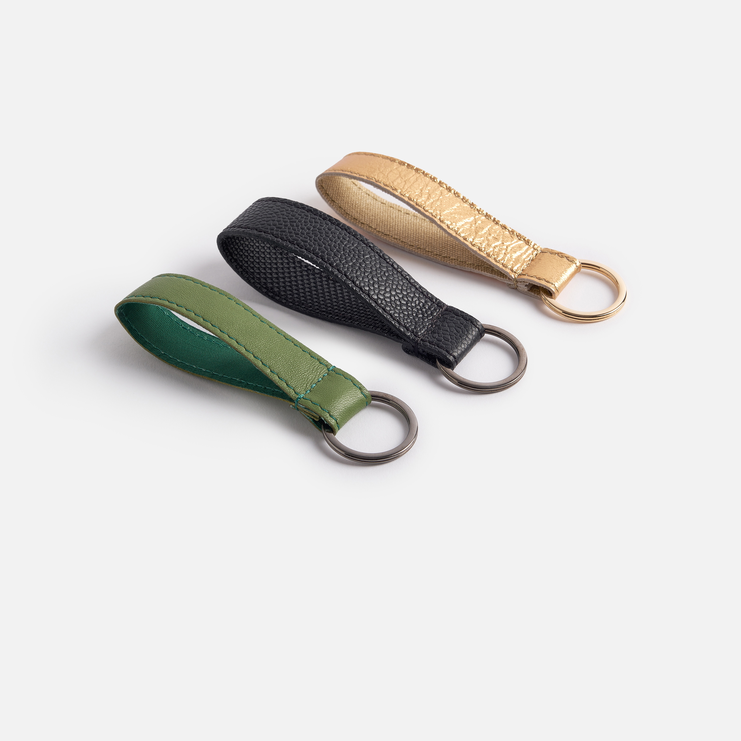 MATIÈRES : Nous avons choisi pour ce porte-clé de très beaux cuirs lisses ou grainés. La doublure intérieure est réalisée dans un tissu coordonné ou un cuir ultra fin. Anneau brisé métallique doré ou couleur canon de fusil.
