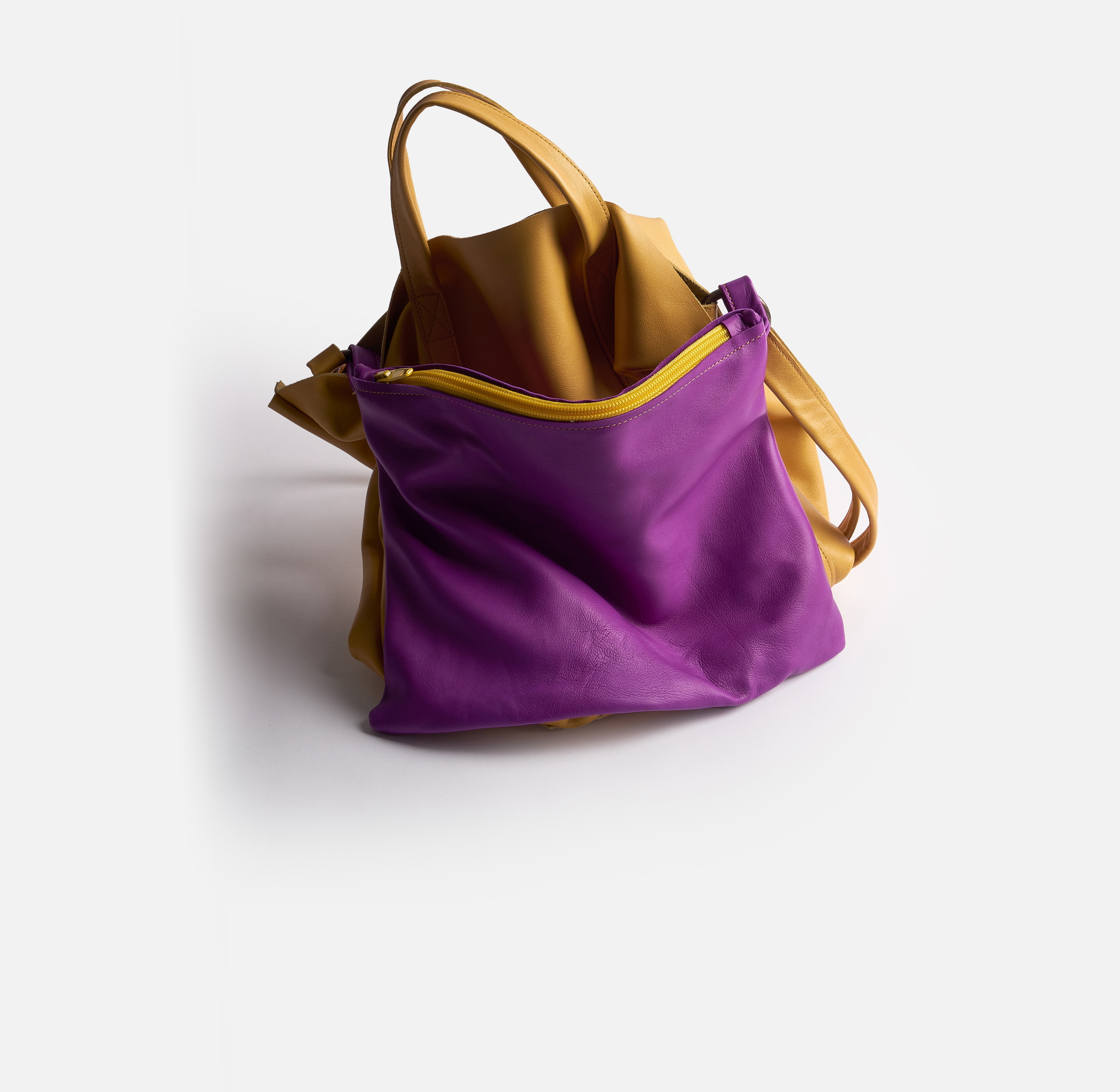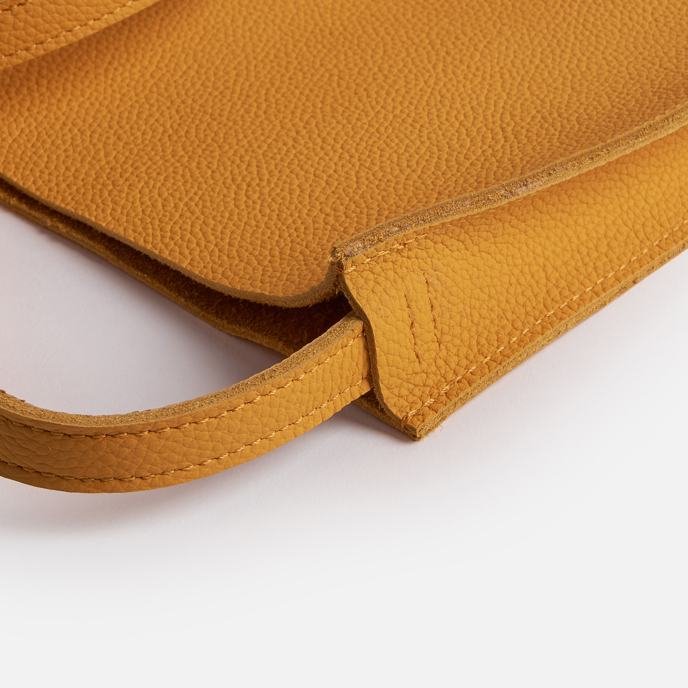 MATIÈRES : Nous avons choisi pour ce sac de très beaux cuirs grainés, épais et tout en souplesse. Pour l'intérieur, nous avons décidé de conserver le cuir brut pour un contact plus doux avec la matière.